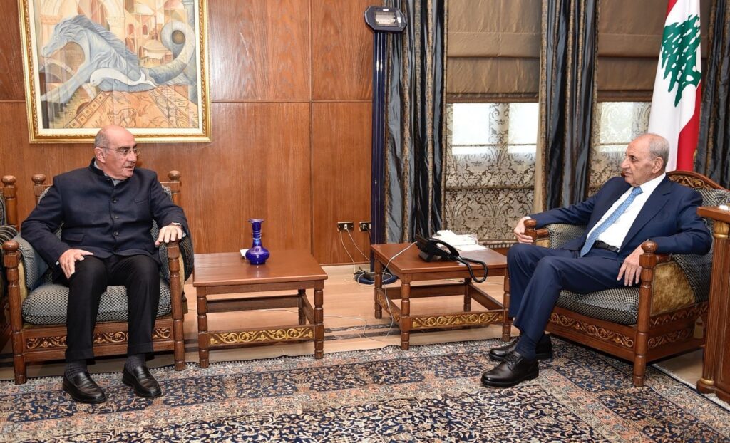 إستقبل دولة رئيس مجلس النواب الاستاذ نبيه بري في مقر الرئاسة الثانية في عين التينة السفير المصري لدى لبنان علاء موسى حيث جرى بحث لتطورات الأوضاع العامة في لبنان والمنطقة والمستجدات السياسية والميدانية على ضوء مواصلة اسرائيل عدوانها على لبنان والعلاقات الثنائية بين لبنان وجمهورية مصر العربية.